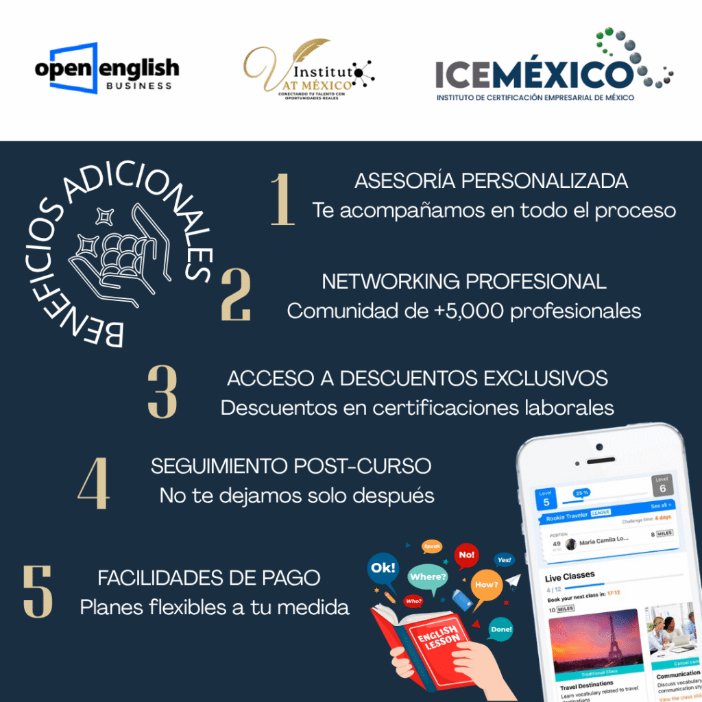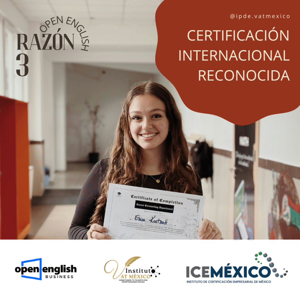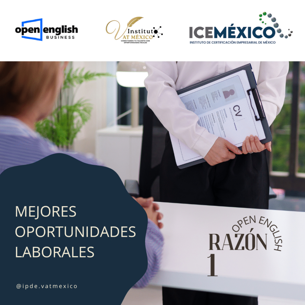 En VAT México, como Centro Evaluador acreditado por ICEMéxico y el CONOCER, y aliado estratégico de Open English, garantizamos una experiencia de formación sólida, profesional y orientada al futuro. Esta alianza amplía nuestra oferta de valor para ayudarte a alcanzar tu próximo nivel profesional.